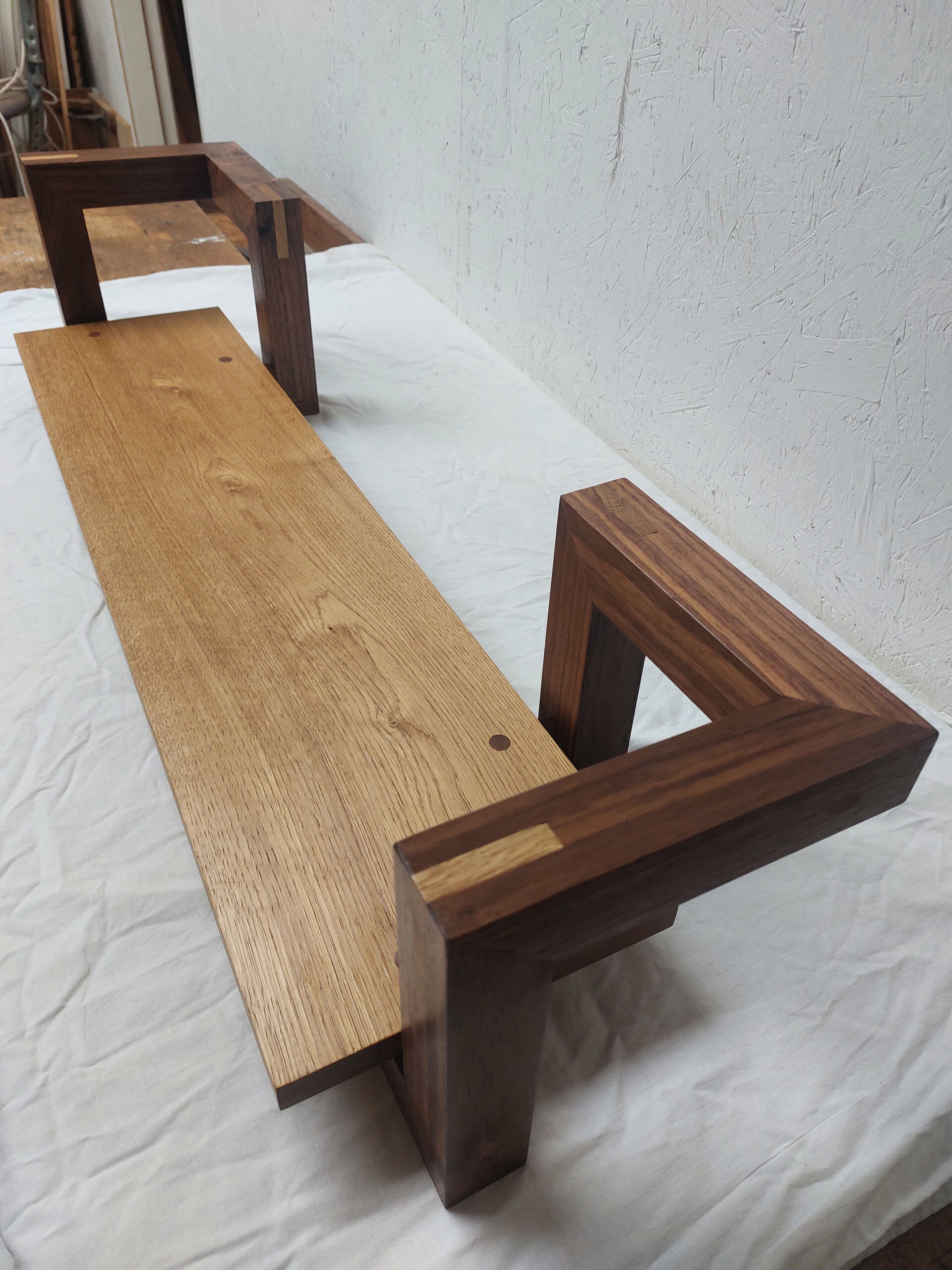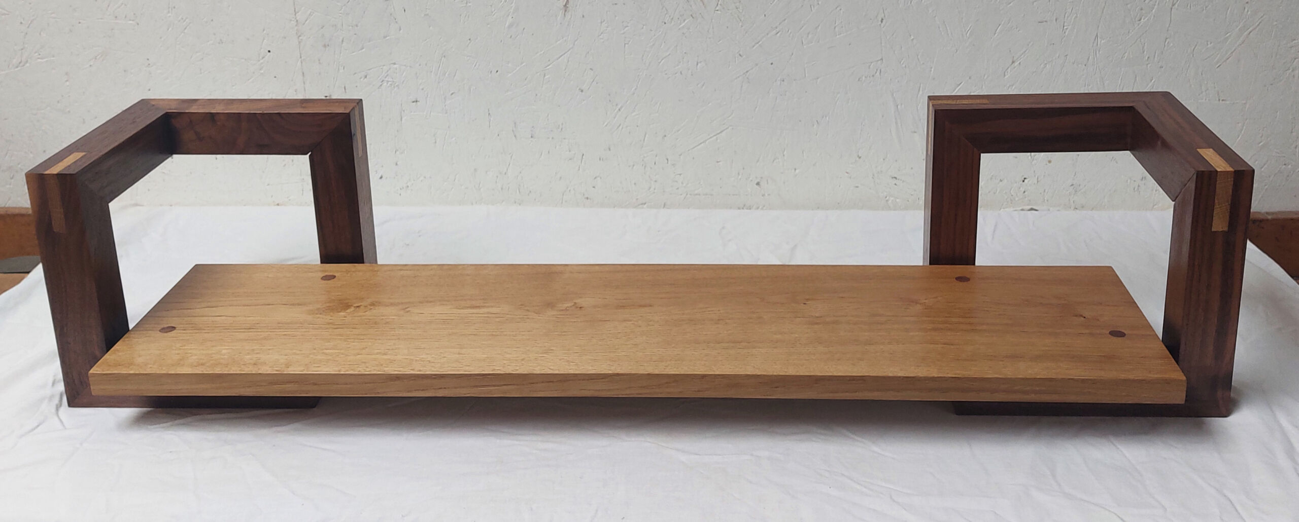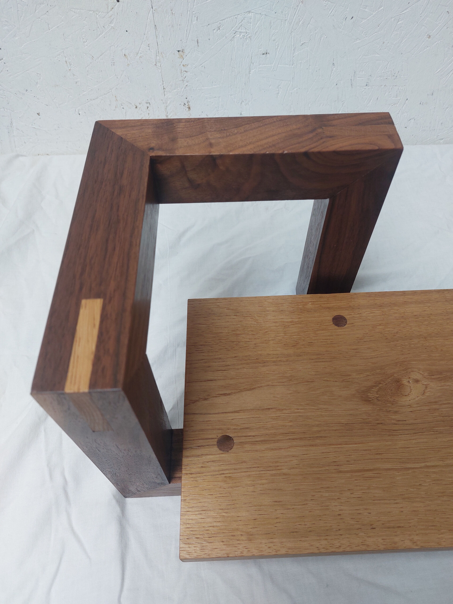 Wandplaat van Eikenhout en Amerikaans notenhout.